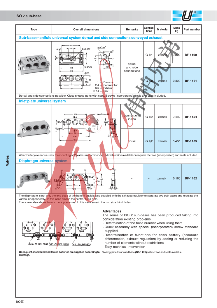 产品标题:BF-1162,底座,底板,意大利UNIVER电磁阀底座